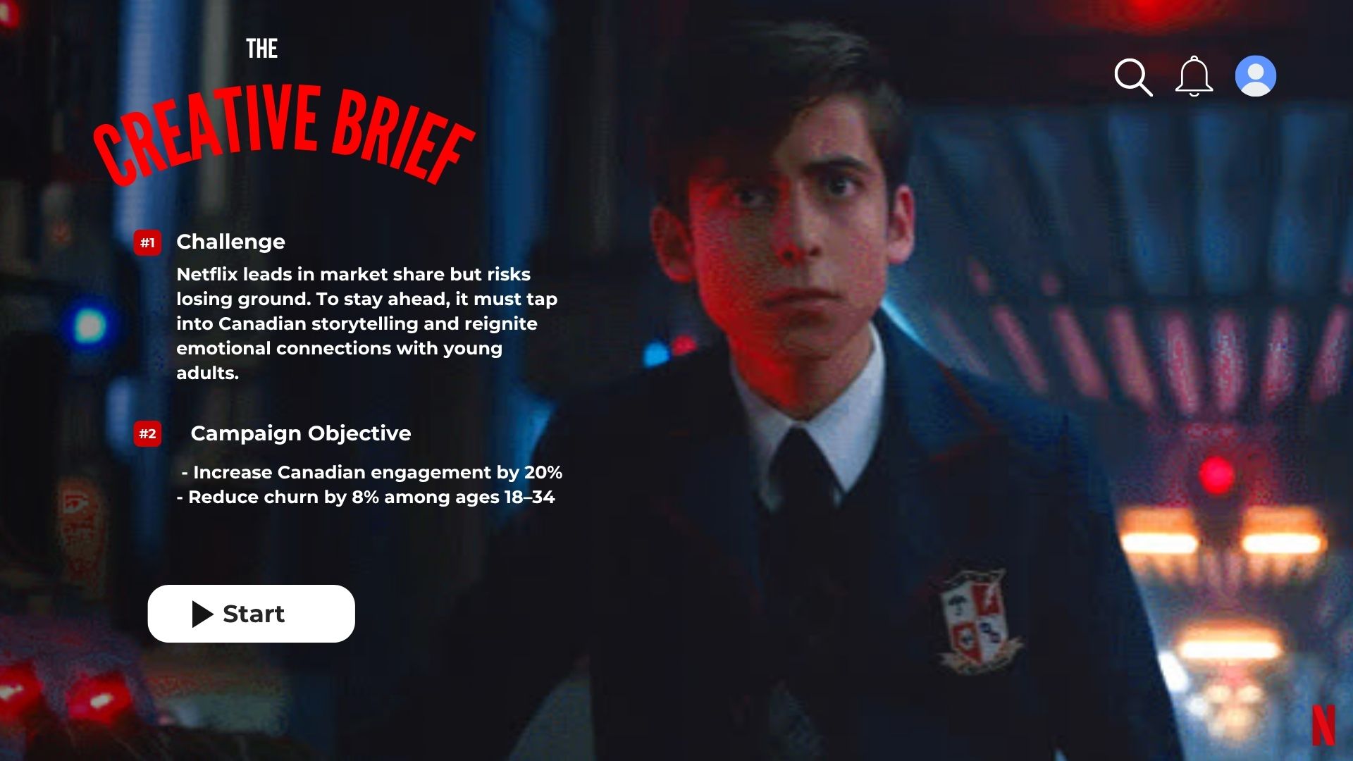 Market research identified that while Netflix leads in market share, it risks losing ground if it doesn't strengthen its emotional connection with young Canadian adults.