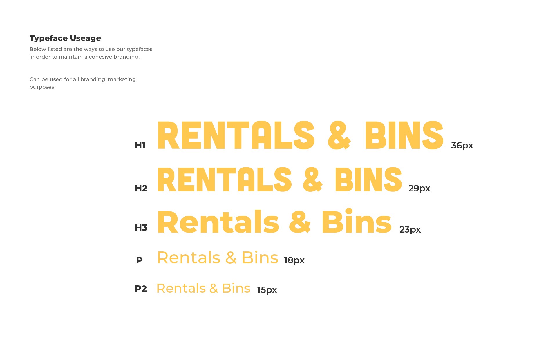 The guideline was structured for practicality, ensuring the various divisions (Rentals and Bins) could apply the brand rules seamlessly. The focus was on creating a user-friendly document for consistent application across all service platforms and local advertisements.